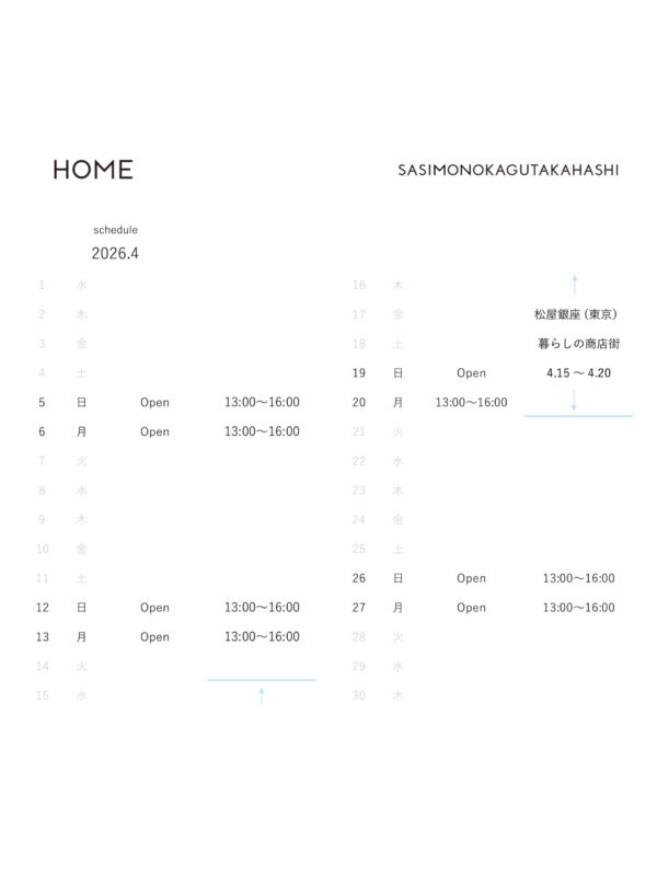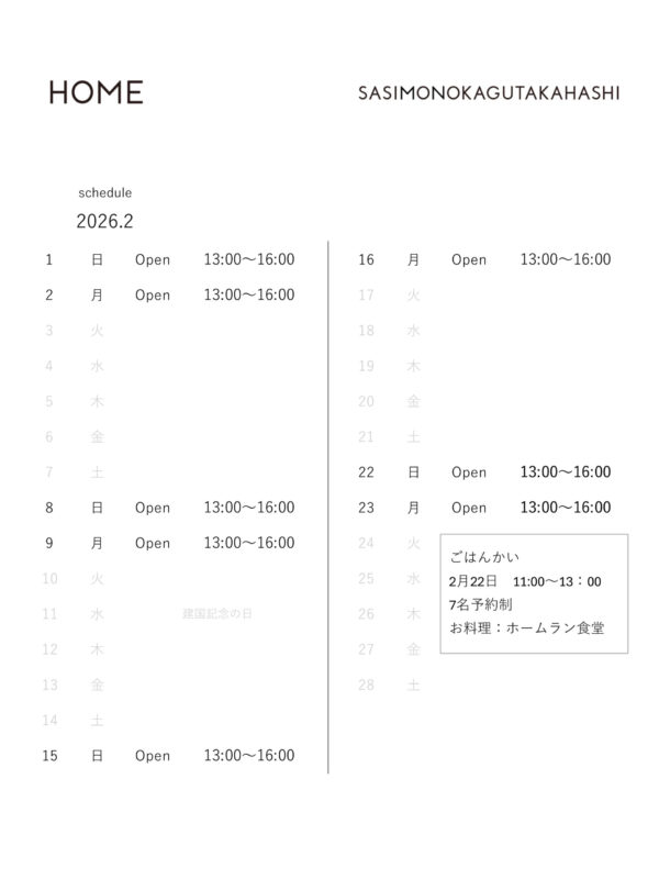 open scheduleは、 下記のカレンダーと instagram @HOME Hiroshima にてお知らせします。