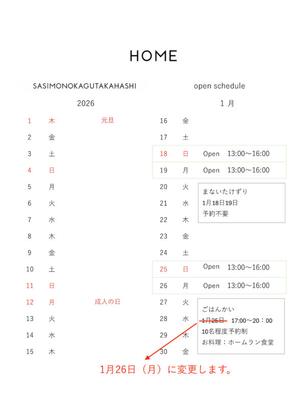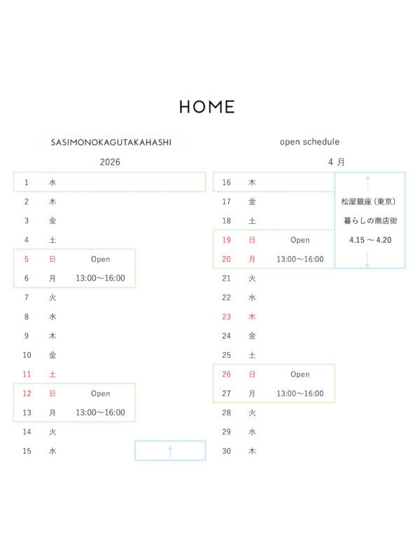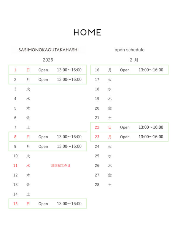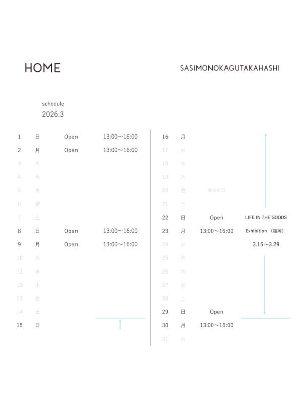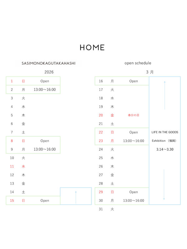 open scheduleは、 下記のカレンダーと instagram @HOME Hiroshima にてお知らせします。